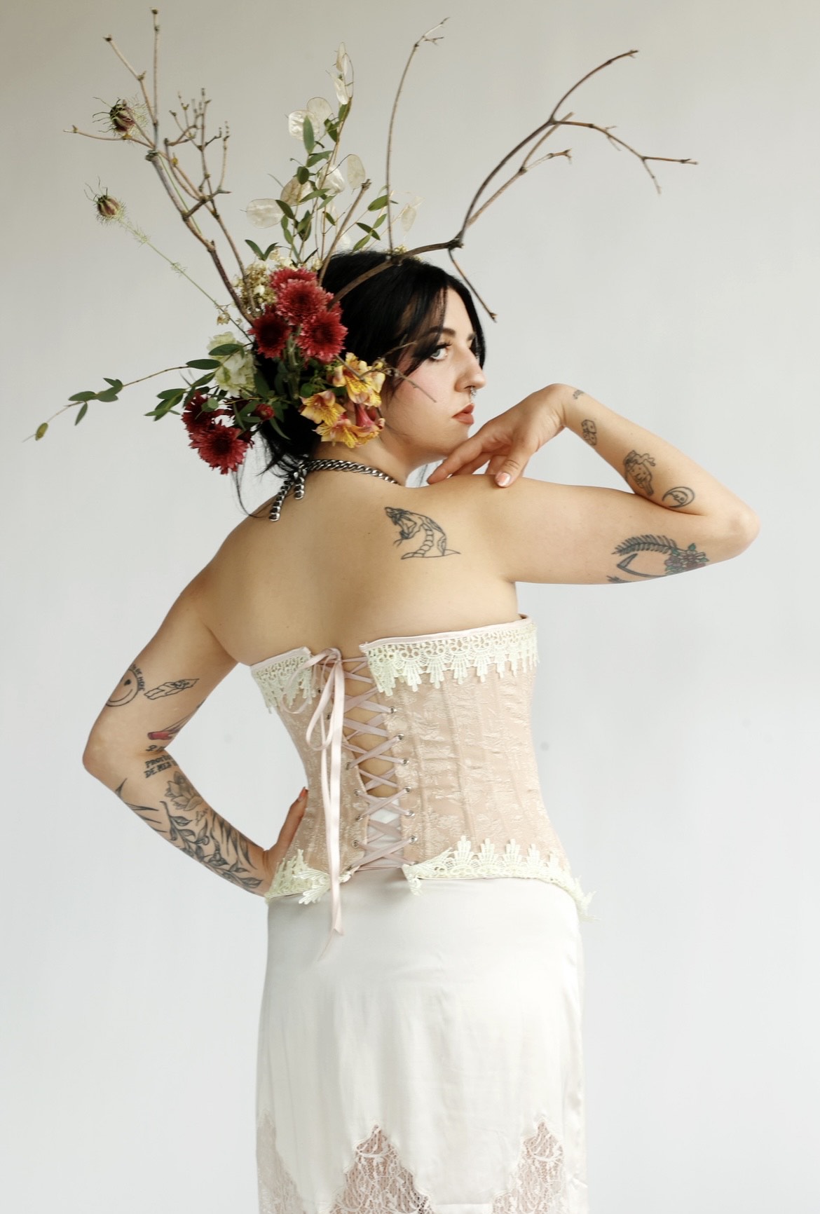A goal I had early on in my training was to do aproject combining both my interest in hair design with what I learned ofIkebana. This past summer, in July of 2025, I organized a photoshoot andfinally got to cross it off my to-do list.